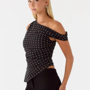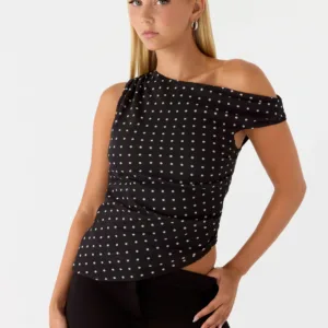 A Peppermayo exclusive, the Stereotype One-Shoulder Top is designed for stylish golden hour looks and offers a chic, fashionable finish. Featuring an asymmetrical off-shoulder neckline and pleated shoulders, this fully lined chiffon top features side shirring and a concealed zip for a figure-hugging fit. Perfect for formal occasions from dusk to dusk.