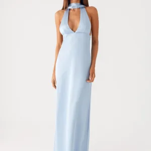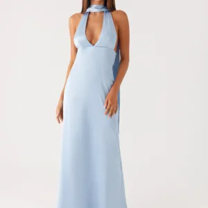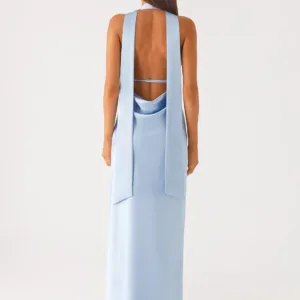 This backless satin Alicia maxi dress is perfect for warm evenings with its low V-neck and flowing length. A thick neck scarf and thin adjustable straps frame the low back, while the satin fabric drapes smoothly over the fully lined skirt. It’s the perfect option for partying from dusk to dusk.