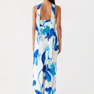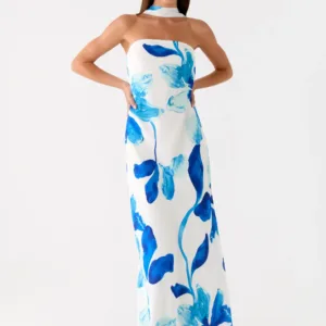 The Ashelle Chiffon Maxi Dress is a stunning strapless, lined, mini-length maxi dress designed to turn heads. This lined dress features an elastic silicone band for a secure fit, a high slit for playful movement, and a concealed side zip, featuring an exclusive print that varies on each piece.