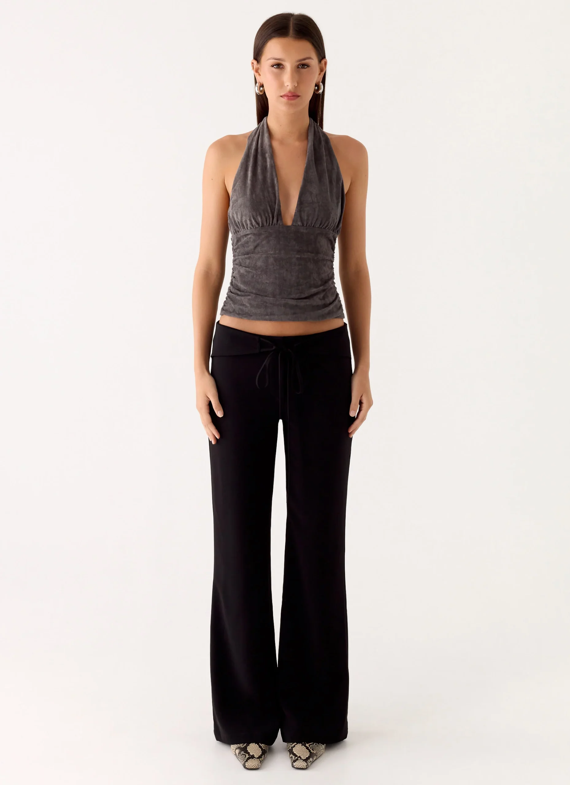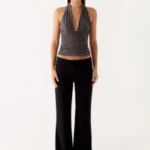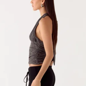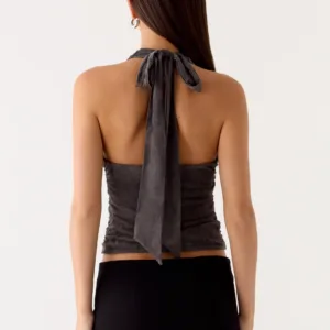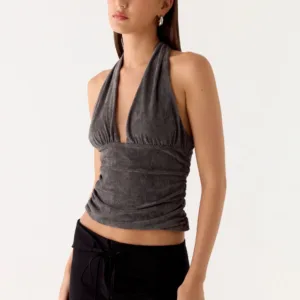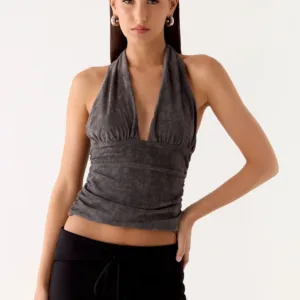 The Aylssa top-halter is created for sunny days and evenings during the “golden hour”. This stretch jersey top features a halter neck, open back, and side ruching for a flattering fit that’s perfect for beach getaways or city nights.