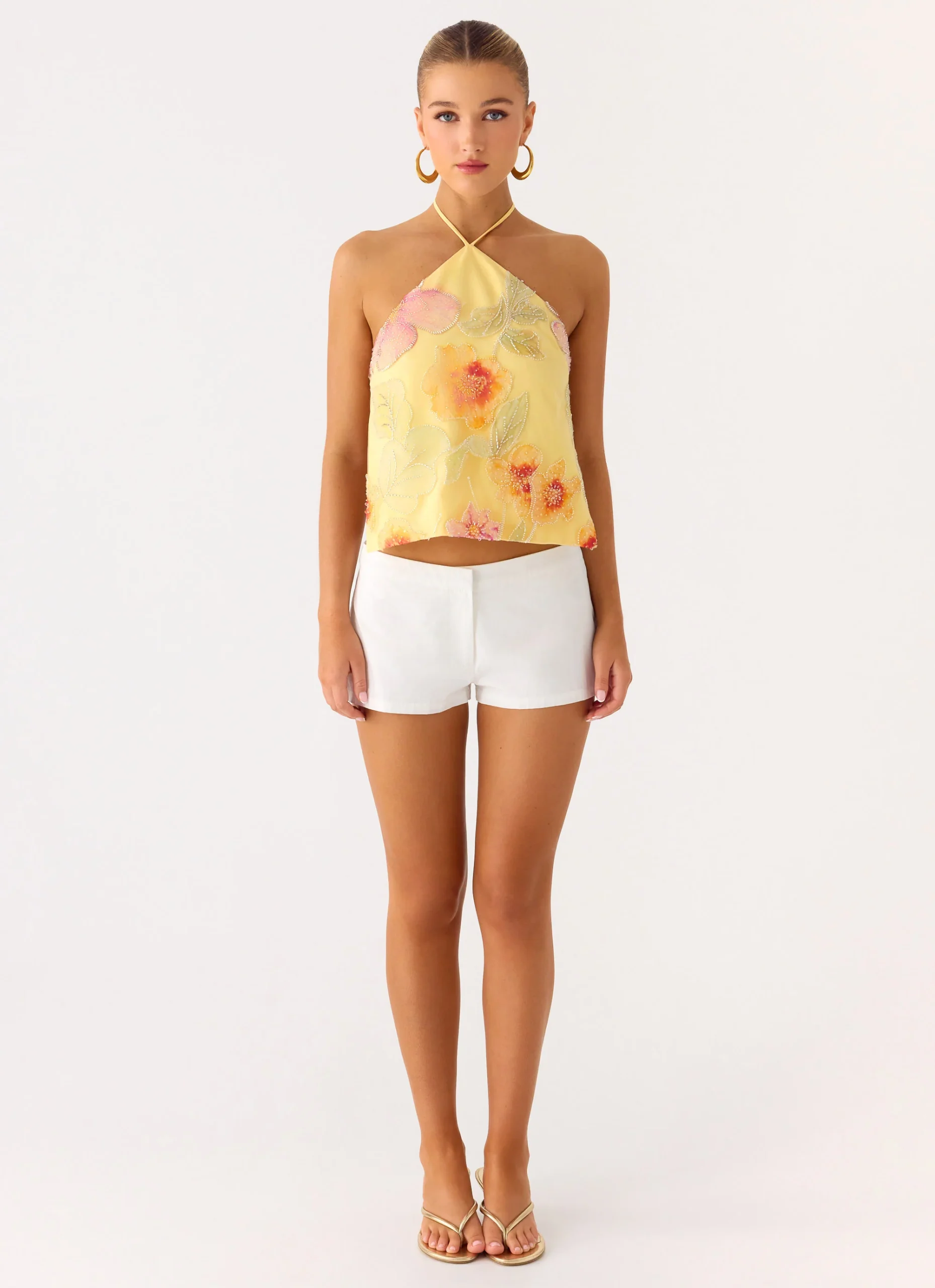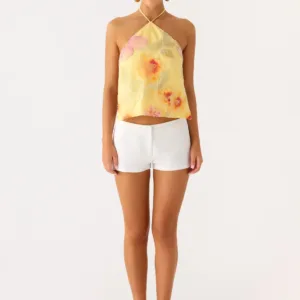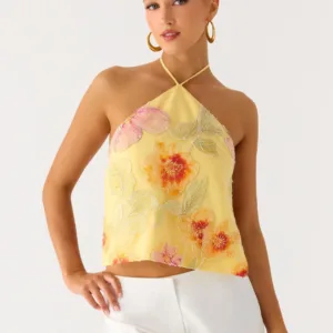 The Bliss Beaded Halter Top is a sparkling and stylish piece, perfect for festival looks or evening events. This halter neck dress with an adjustable halter back provides a secure fit and is adorned with intricate beading.