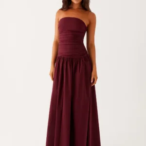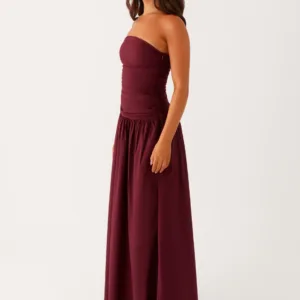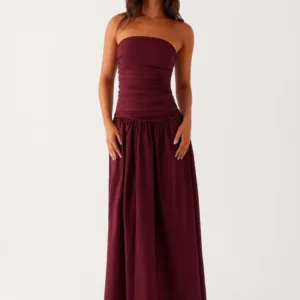 The Carmel maxi dress exudes effortless elegance. Gathered sides accentuate your curves, the drop waist creates a relaxed silhouette, and the strapless neckline is perfect for unforgettable moments.