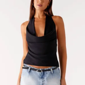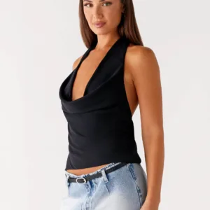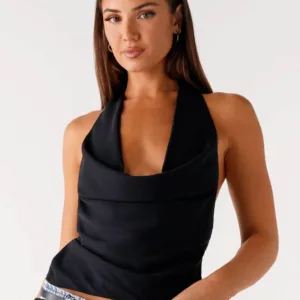 Sexy and effortless, the black Charli Cowl Top is perfect for evening wear. Featuring a low cowl neckline at the front, a draped low back and a soft tie at the back, this dress is your perfect choice for elegant evenings and statement-making looks.