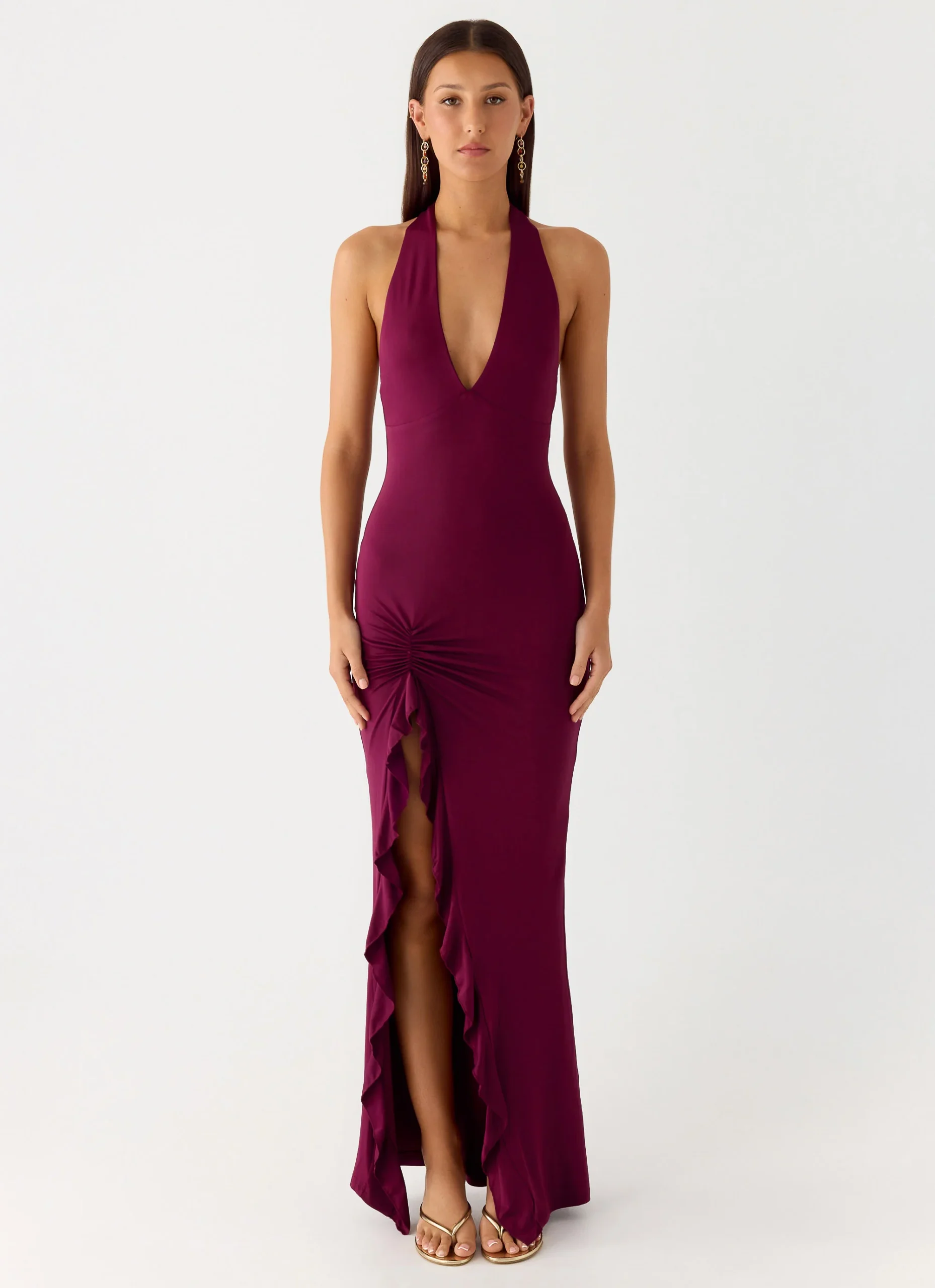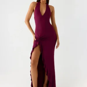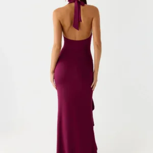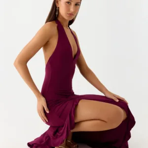 The Charmed By You maxi dress features a flattering V-neckline and a form-fitting stretch jersey fabric for comfort and style. The open back with a tie closure adds elegance and charm, making it perfect for an evening out. The sleek design and luxurious fabric ensure you’ll turn heads wherever you go.