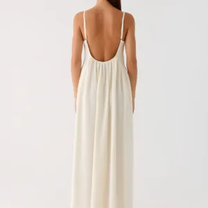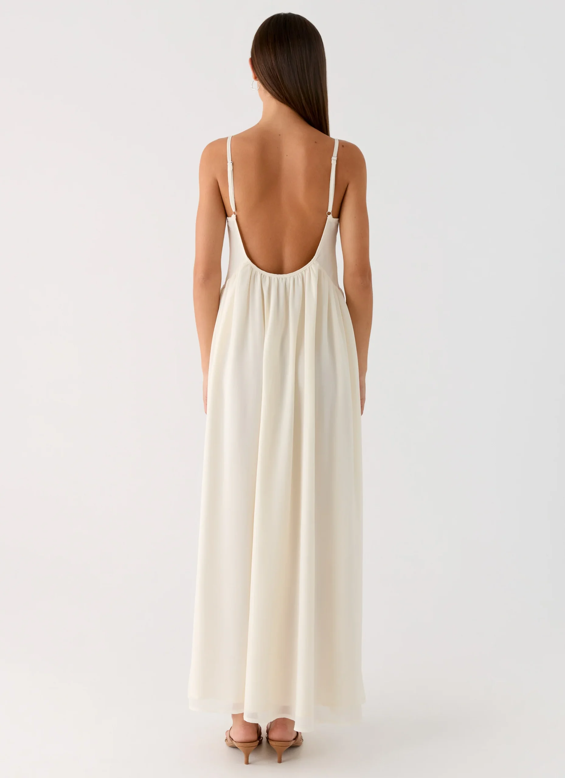 The Whisperlight Chiffon Boat Neck Maxi Dress is an airy, elegant dress perfect for fluid movement and sophisticated style. This fully lined, gathered bustier dress features a plunging neckline and adjustable spaghetti straps for a flattering, comfortable fit.