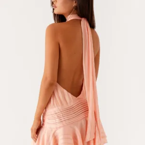 The Willow Chiffon Mini Dress exudes effortless charm with its soft chiffon fabric and figure-flattering silhouette. The bias-cut dress hugs the figure gracefully and is finished with thin, adjustable straps for a personalized fit.