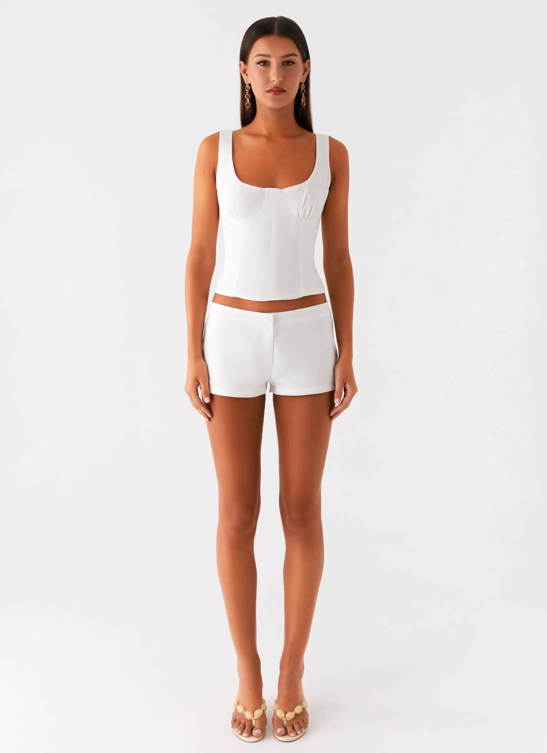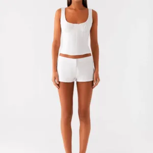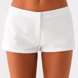 Coastline mini shorts are a summer essential, perfect for sunny days and effortless style. These low-rise cotton shorts feature a hook-and-eye zip front closure, are fully lined for comfort and are perfect for pairing with your favorite tops and bikinis.