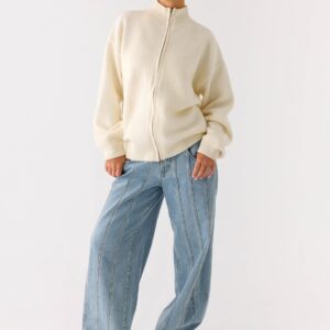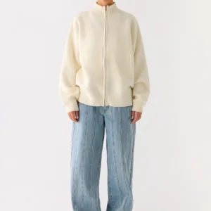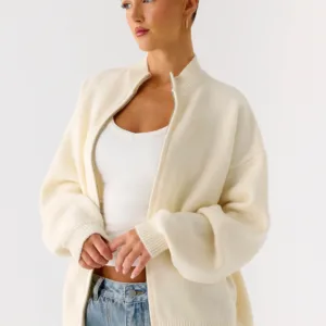 The Davy Zip-Up Knit Jacket is designed for relaxed, cozy style with a touch of urban chic. Its loose fit and front zip make it easy to layer over your favorite tees or dresses. Crafted from a soft jersey with silver-tone hardware, this piece is perfect for everyday outings or sunset strolls.