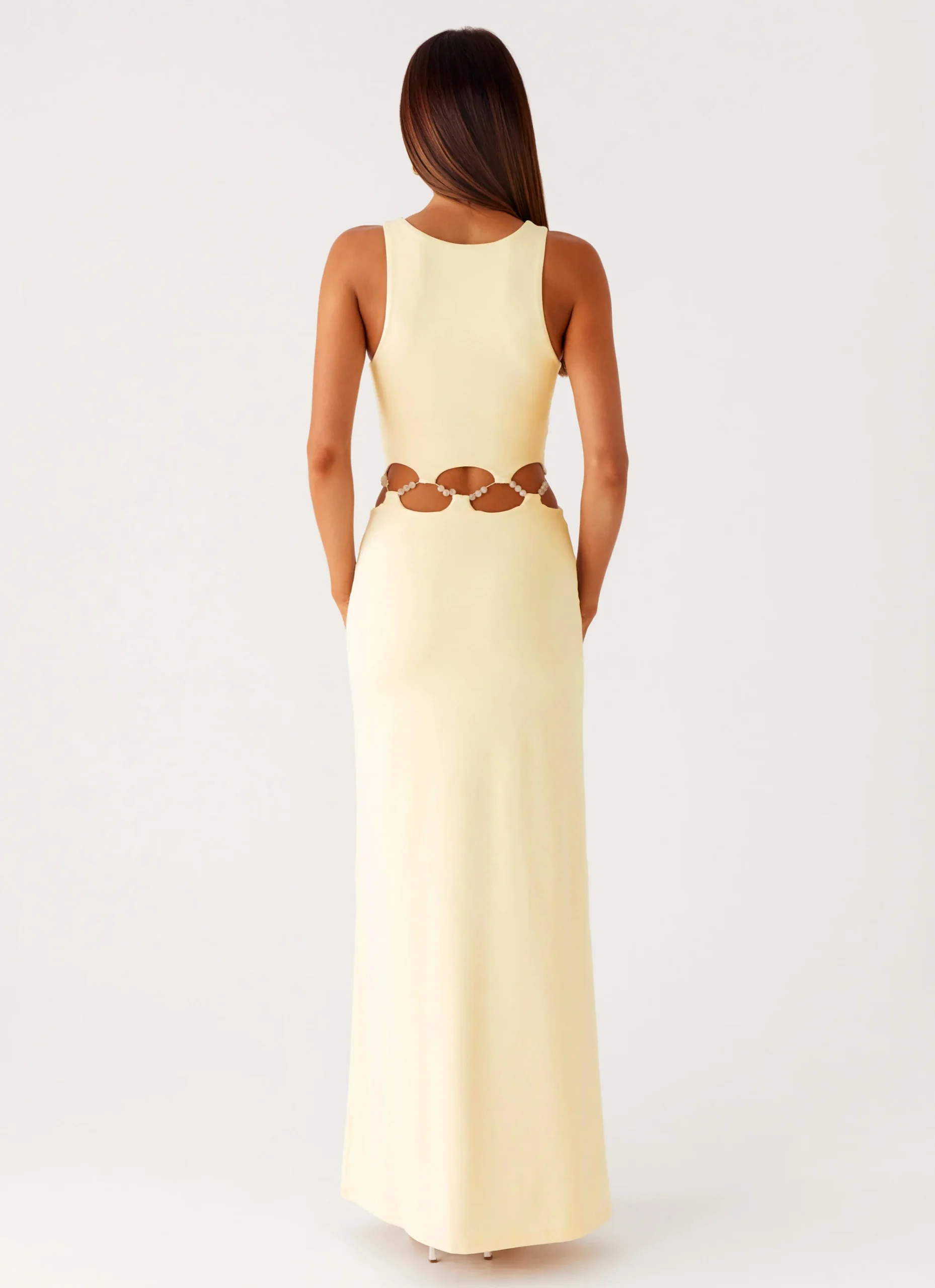 Cast everyone’s attention in the Dreamboat beaded maxi dress—the perfect outfit for your next event. Crafted from luxurious stretch jersey, this bodycon maxi dress features a seductive low neckline, a cutout waist, and delicate beading for a touch of sparkle. This fully lined, backless dress is the perfect combination of glamour and edginess.