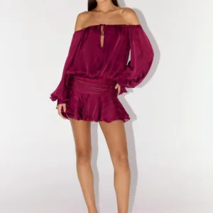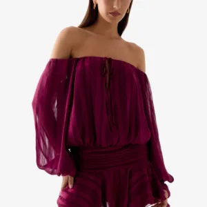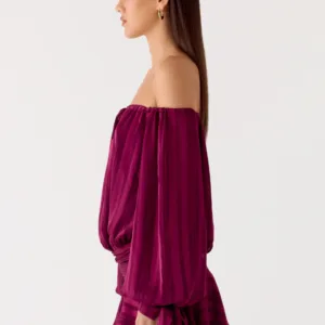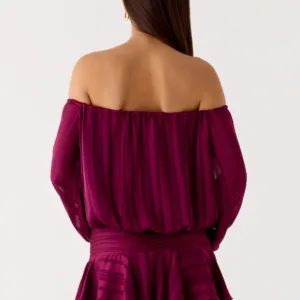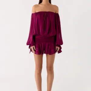 The Eira balloon sleeve mini dress is a playful and flirty choice for warm days and evenings. Featuring an off-the-shoulder design, a tie front, elastic panels, and a fully lined silhouette, this mini dress combines style and comfort. A ruffle hem adds movement and a playful, feminine touch.