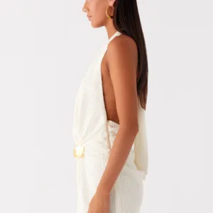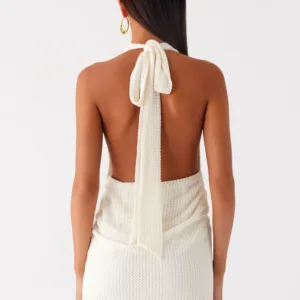 – Open back with tie fastening at the neck