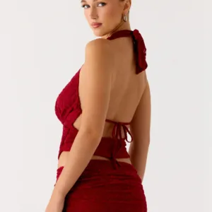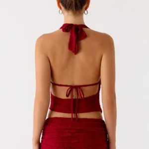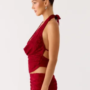 The Farruko Jacquard Halter Top is made for those golden hour moments that lead to evening adventures. Featuring a halter neck, low cowl neck, and open back, this silhouette is crafted from a textured stretch jacquard fabric for a superb fit. Wide straps complete the look, making it a confident and feminine evening wear piece.