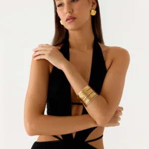 The Golden Blur Bracelet is designed to create stylish looks from sunset to sunset, with a bright, fashionable accent. Crafted from lightweight alloy, this striking accessory will complement any outfit with a sleek, modern design.