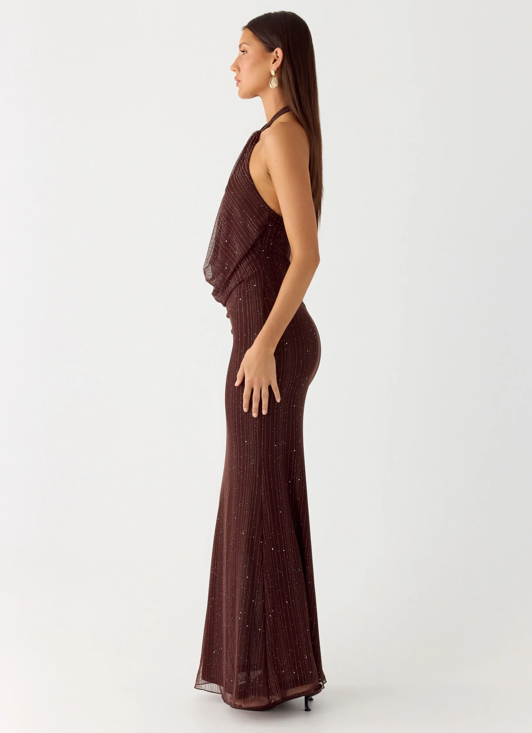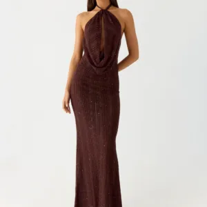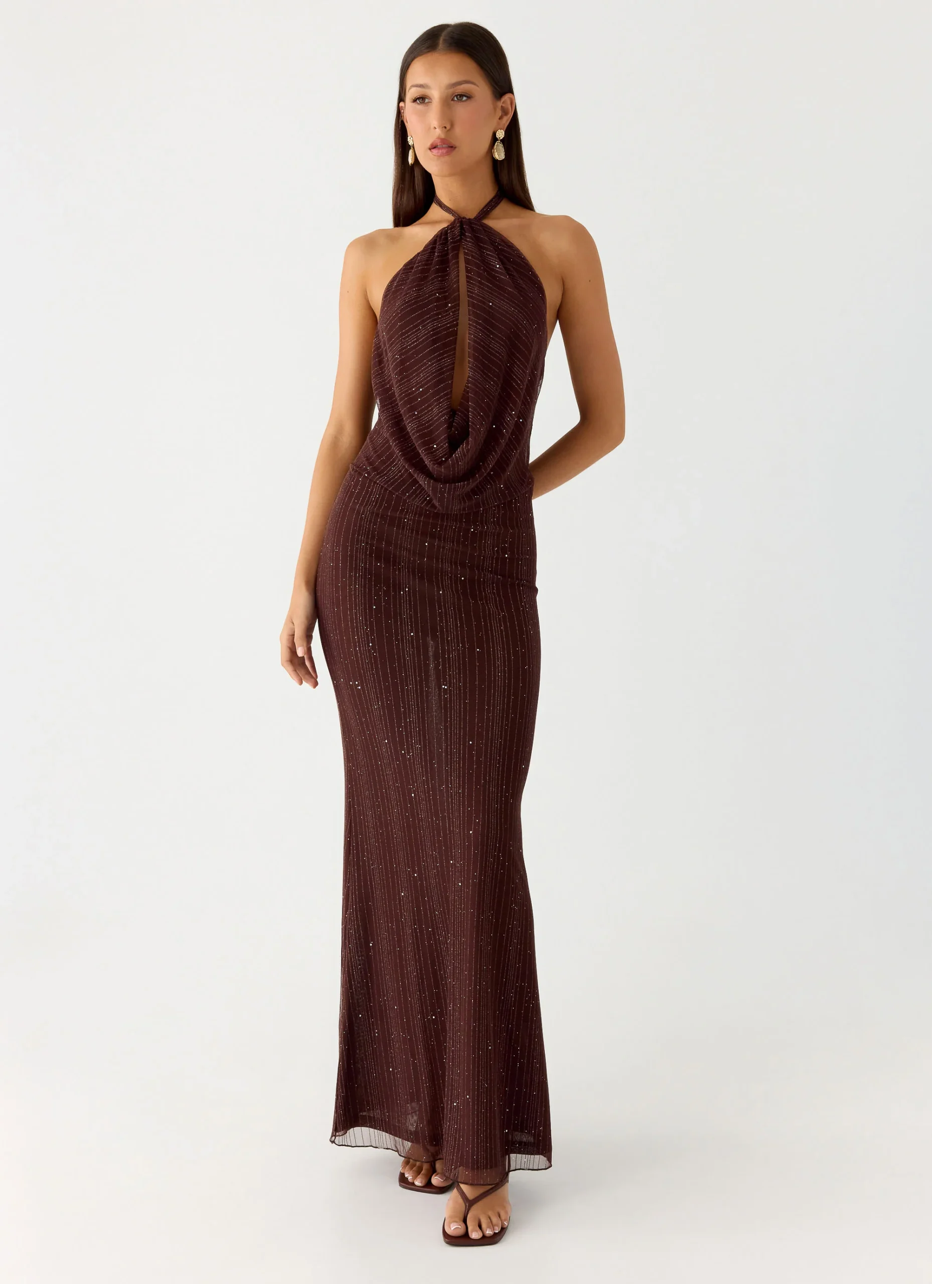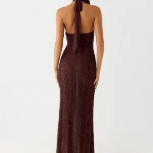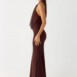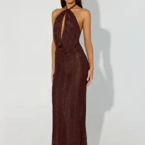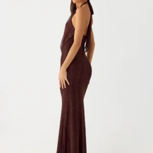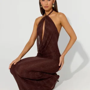 Haylan Sparkle Mesh Maxi Dress – Chocolate