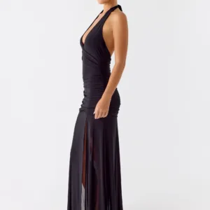 Reveal your island style with the Island Muse dress in vibrant lime. This stunning maxi dress features a flattering V-neckline and gathered sides to flatter your figure. Crafted from breathable stretch mesh, this dress flows effortlessly with every step, while a side slit at the front adds a daring edge – perfect for those golden hour moments that turn into unforgettable nights.