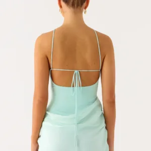 The Keanu Cupro Mini Dress is a chic halter neck mini dress crafted from stretch mesh and fully lined for comfort. Featuring a tie back, concealed zip fastening, asymmetrical hem, and draped front skirt, it’s perfect for creating a statement-making look.