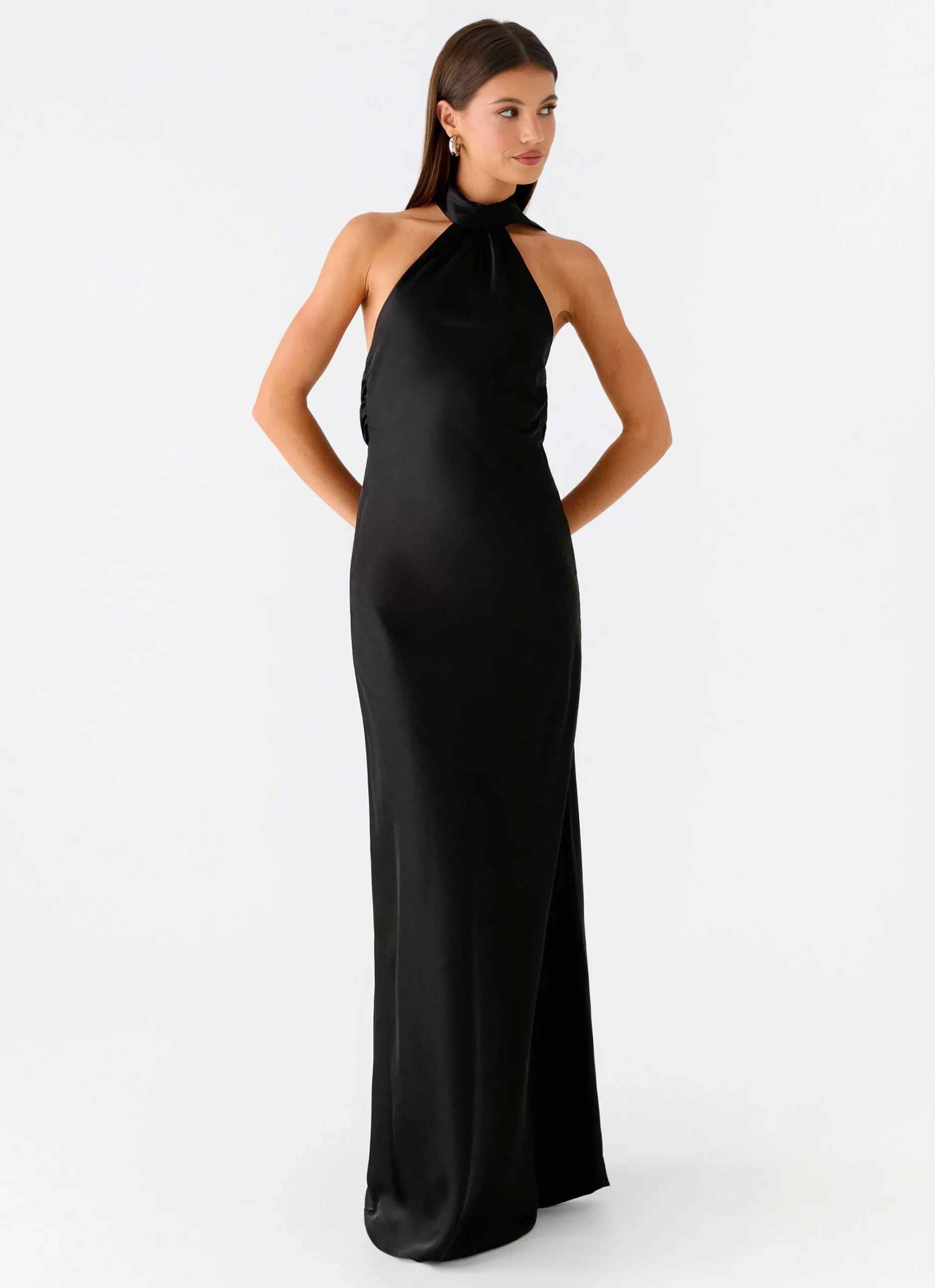 A Peppermayo exclusive, the Keena Scarf Maxi Dress is designed for effortless elegance from golden hour to moonlight. Featuring a halter neck, long, thin straps, and a low, draped back, this fully lined maxi dress slips on and off easily. Featuring button-up back and collar closures, this dress perfectly combines fluid movement with the charm of an evening gown.