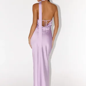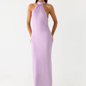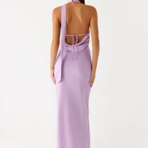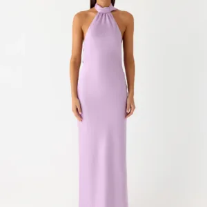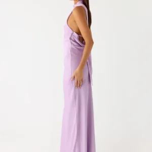 The Keena Scarf Maxi Dress is a stunning silhouette for sunset moments. This halter neck sleeper dress features long spaghetti straps, a low back, is fully lined, drapes beautifully, has a bias cut and elegant buttons at the back for a sophisticated touch.
