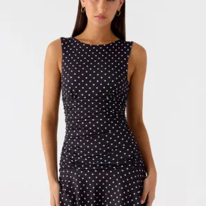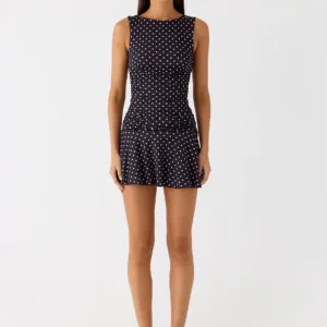 The Kelda mini dress offers an elegant silhouette that’s sure to turn heads. Featuring a crew neckline with ruched sides for dramatic movement, a flared skirt and a dropped waist, this dress offers playful balance and is crafted from stretch jersey.