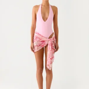 The Kerensa sarong is a versatile, stylish accessory, perfect for layering over a swimsuit or layering with casual wear. This mini length sarong features a low rise, side ties, and an exclusive print for relaxed style and an adjustable length.