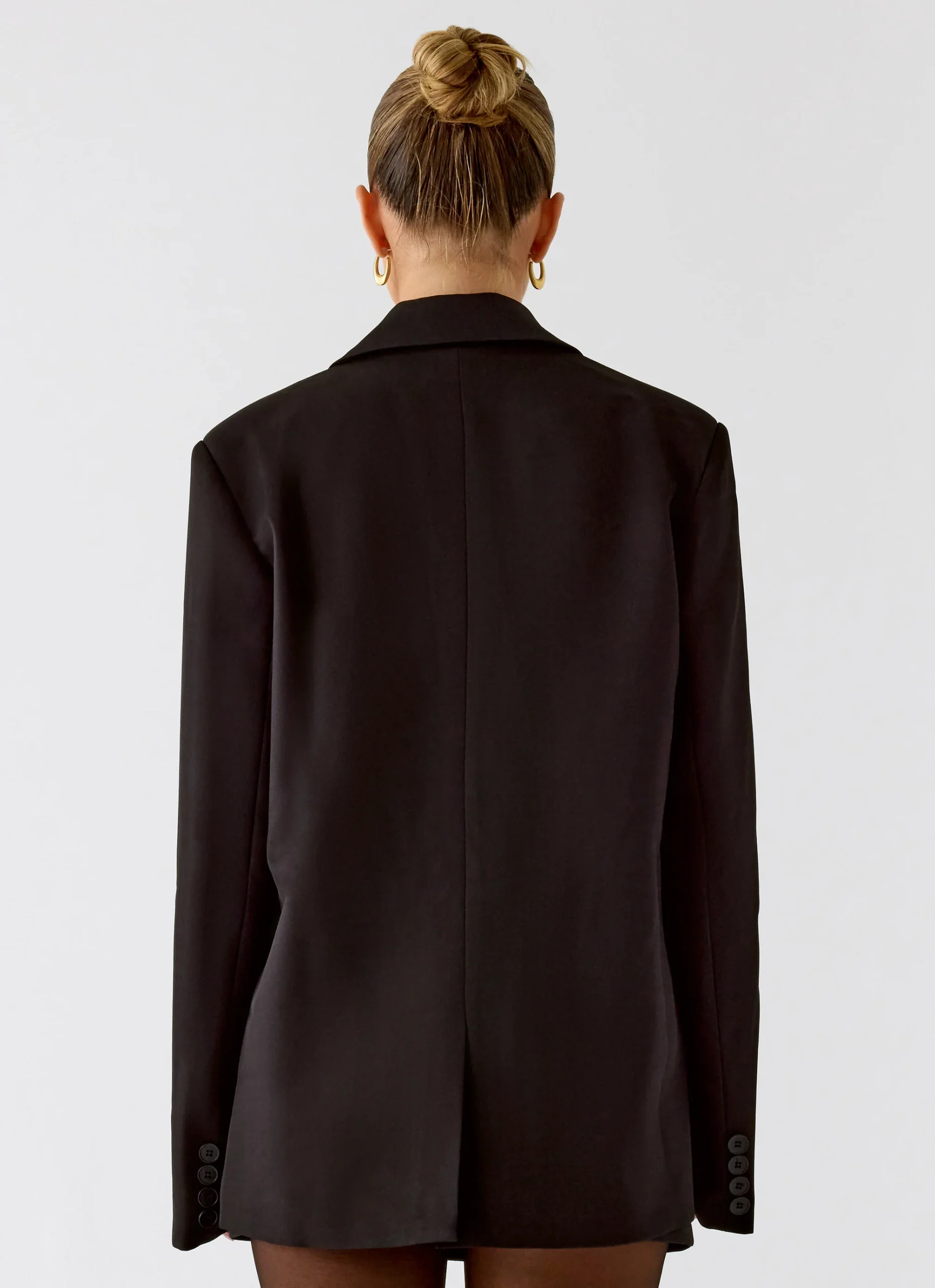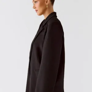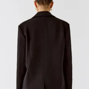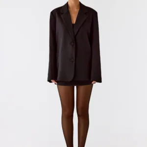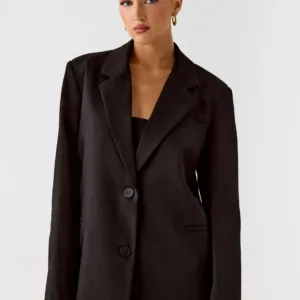 A Peppermayo exclusive, the Kingston Oversized Blazer is designed for city nights and elegant daytime looks. Its elongated silhouette with shoulder pads and relaxed fit create a bold, fashionable look, while the button closure and two front decorative pockets add a touch of sophistication. Fully lined and versatile.