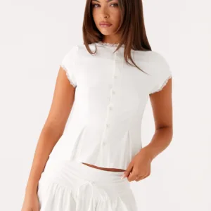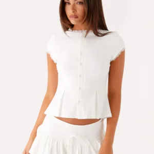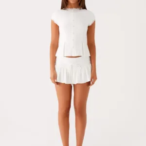 The Landon mini shorts combine flirty and functional styles with a low rise, drawstring waistband, and ruffle hem over built-in micro shorts. Crafted from stretch jersey, they’re a playful addition.