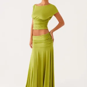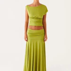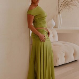 The Liana long skirt features a gathered waist, low rise, and gathered side panel. Designed to flatter and flatter the figure, it’s perfect for the “golden hour.” and evening wear.