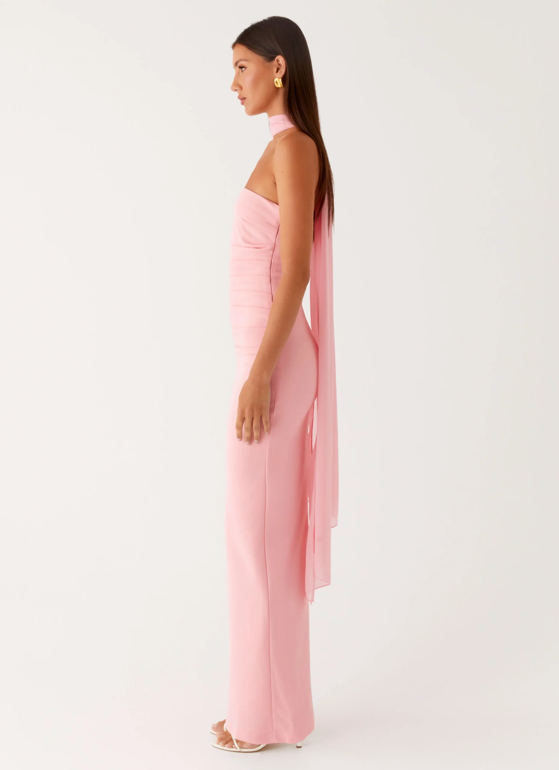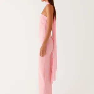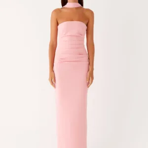 The Libra Maxi Dress is a stunning combination of style and comfort, with an open neckline and stretchy material that hugs your curves perfectly. Strapless dress with an elegant scarf trim to complete the look.