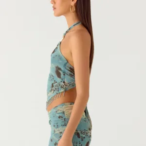 Lloyd Beaded Halter Top – Aqua Blur
