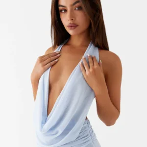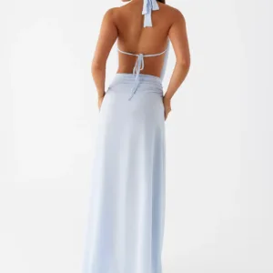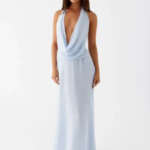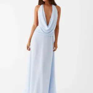 Featuring a deep open turtleneck and a seductive open back, this maxi dress exudes timeless sophistication and modern charm, perfect for any occasion.