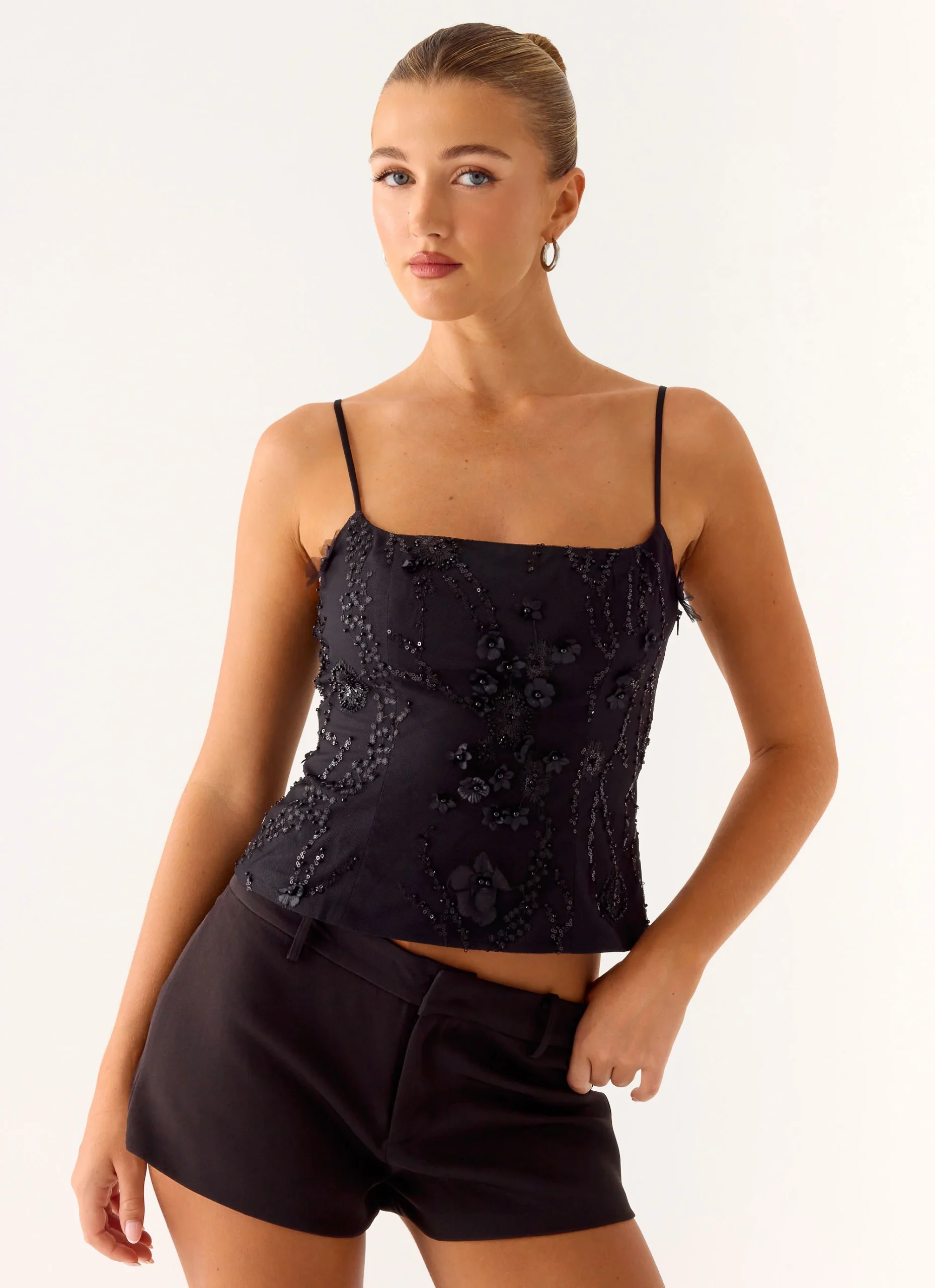 The Love Me Hard Top is a striking beaded top with a flattering square neckline. The beaded trim adds a subtle shimmer, while the lining ensures a smooth, comfortable fit. ?