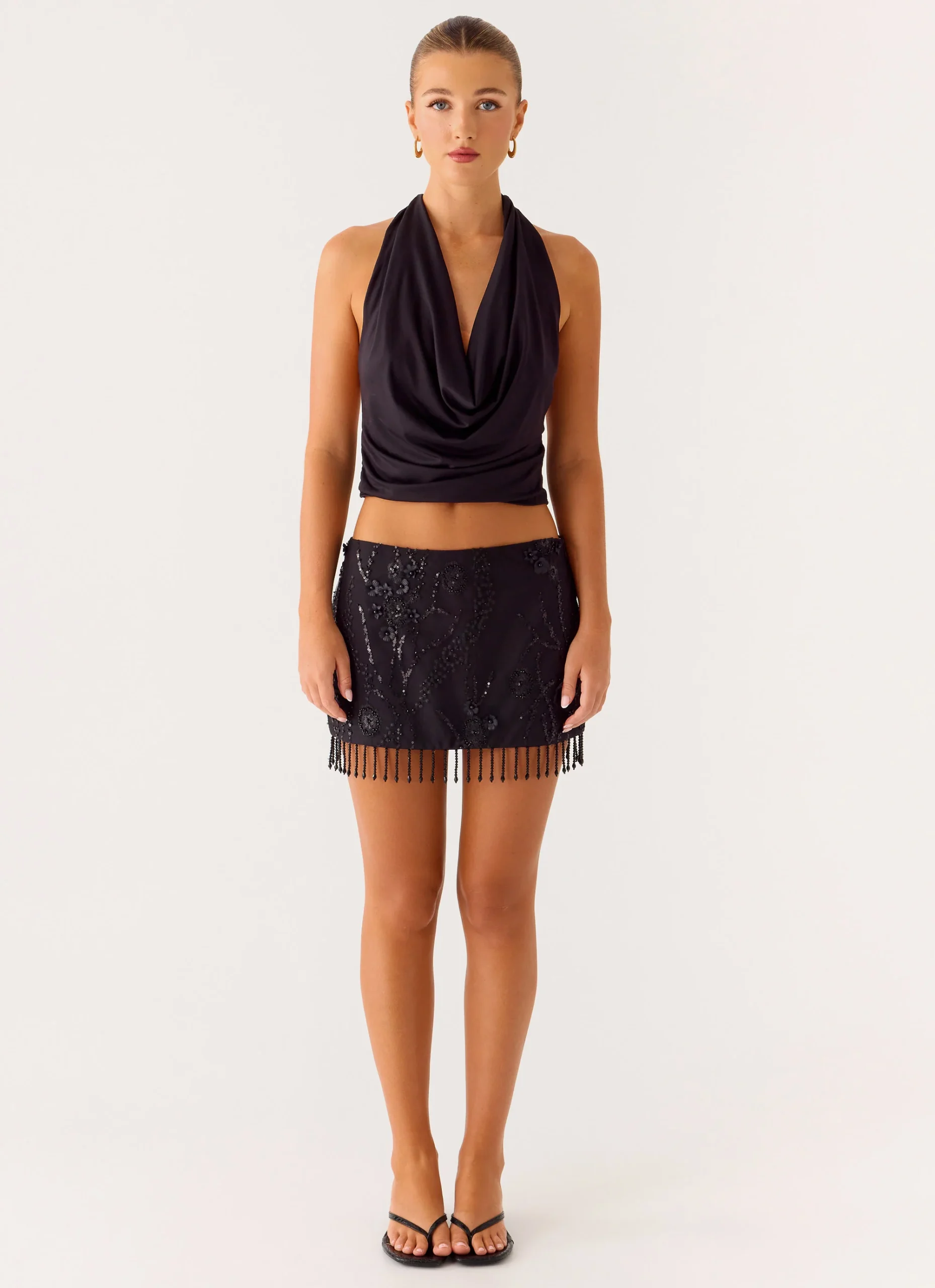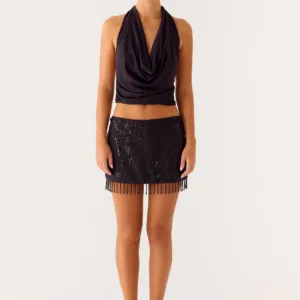 The Overload Beaded Mini Skirt is a stunning wardrobe staple for a party-ready look. Featuring a drop waist, fringed hem and exquisite beading, this dress is designed to sparkle from every angle.
