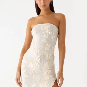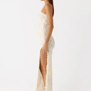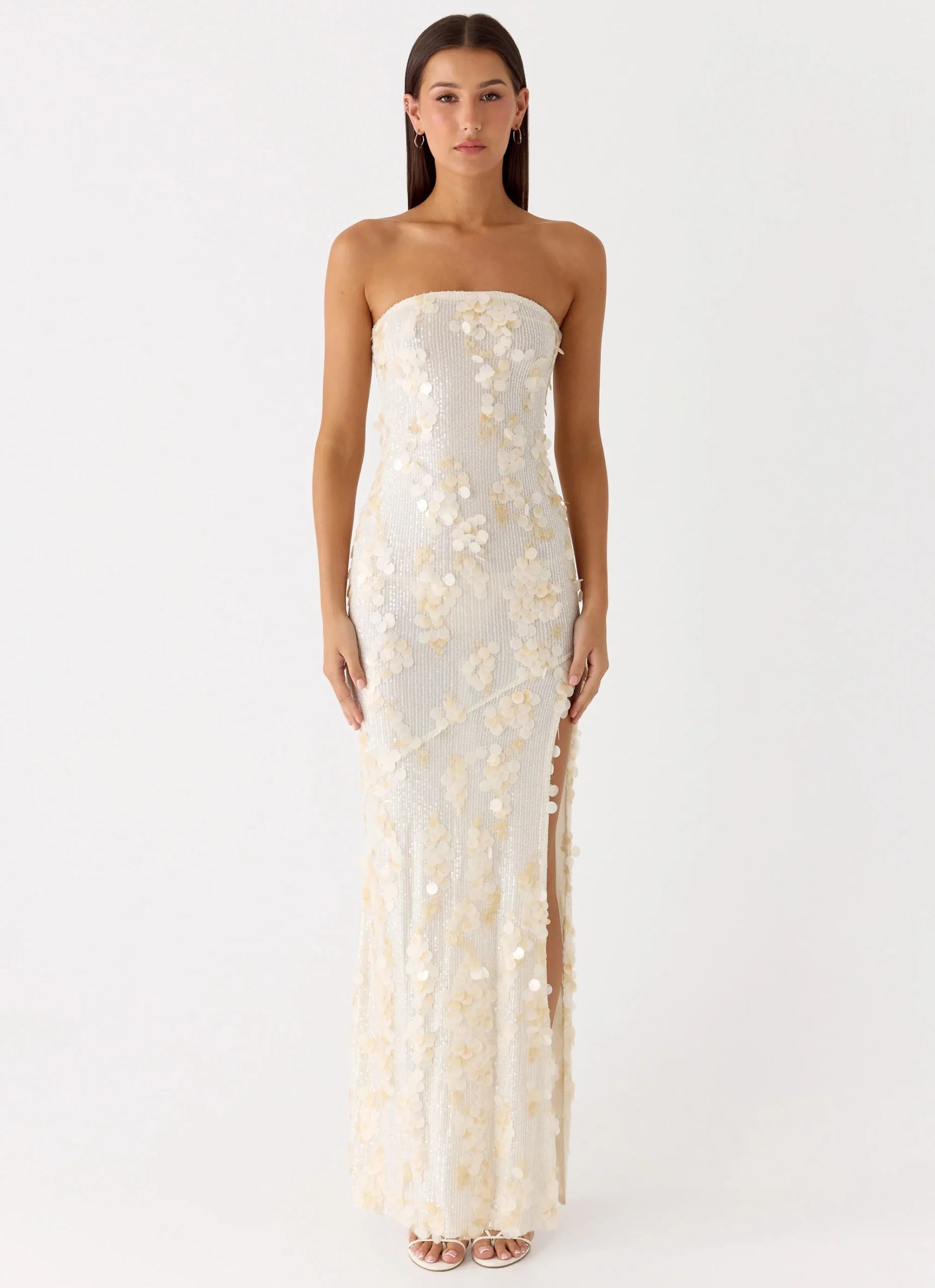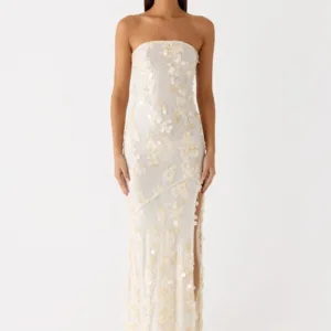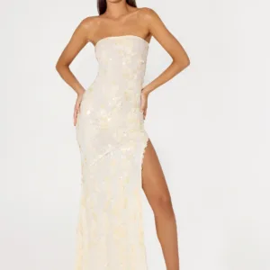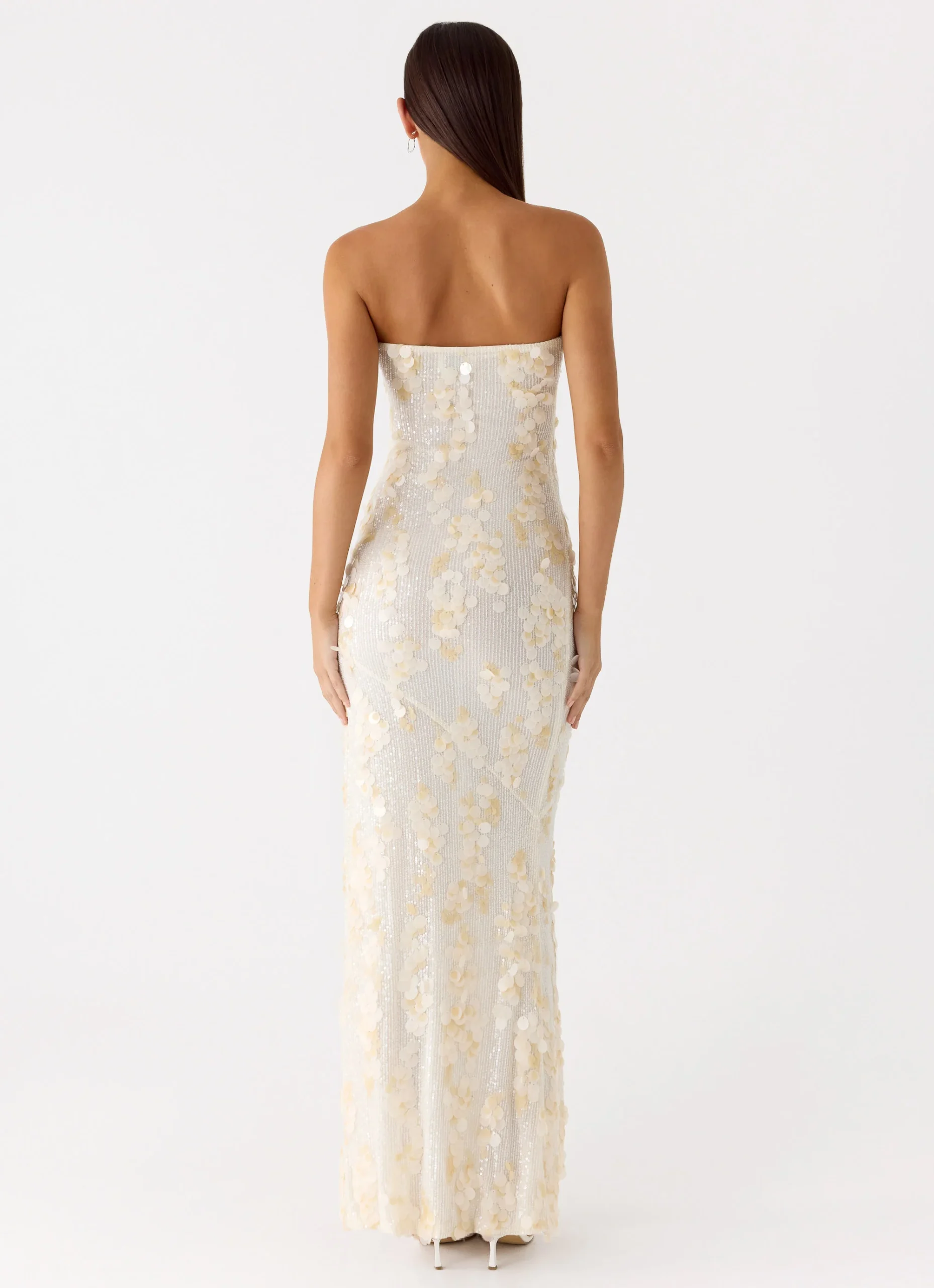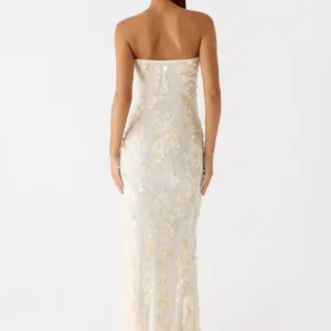 The Minni Sequin Maxi Dress is designed to sparkle from sundown to sundown. This strapless, figure-hugging maxi dress is fully lined and embellished with sequins for effortless sparkle at any event or party.