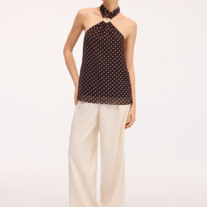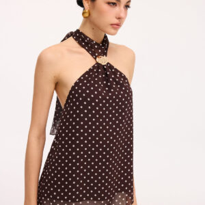 Polka dot backless halter top with metallic details