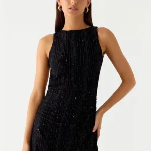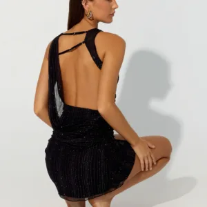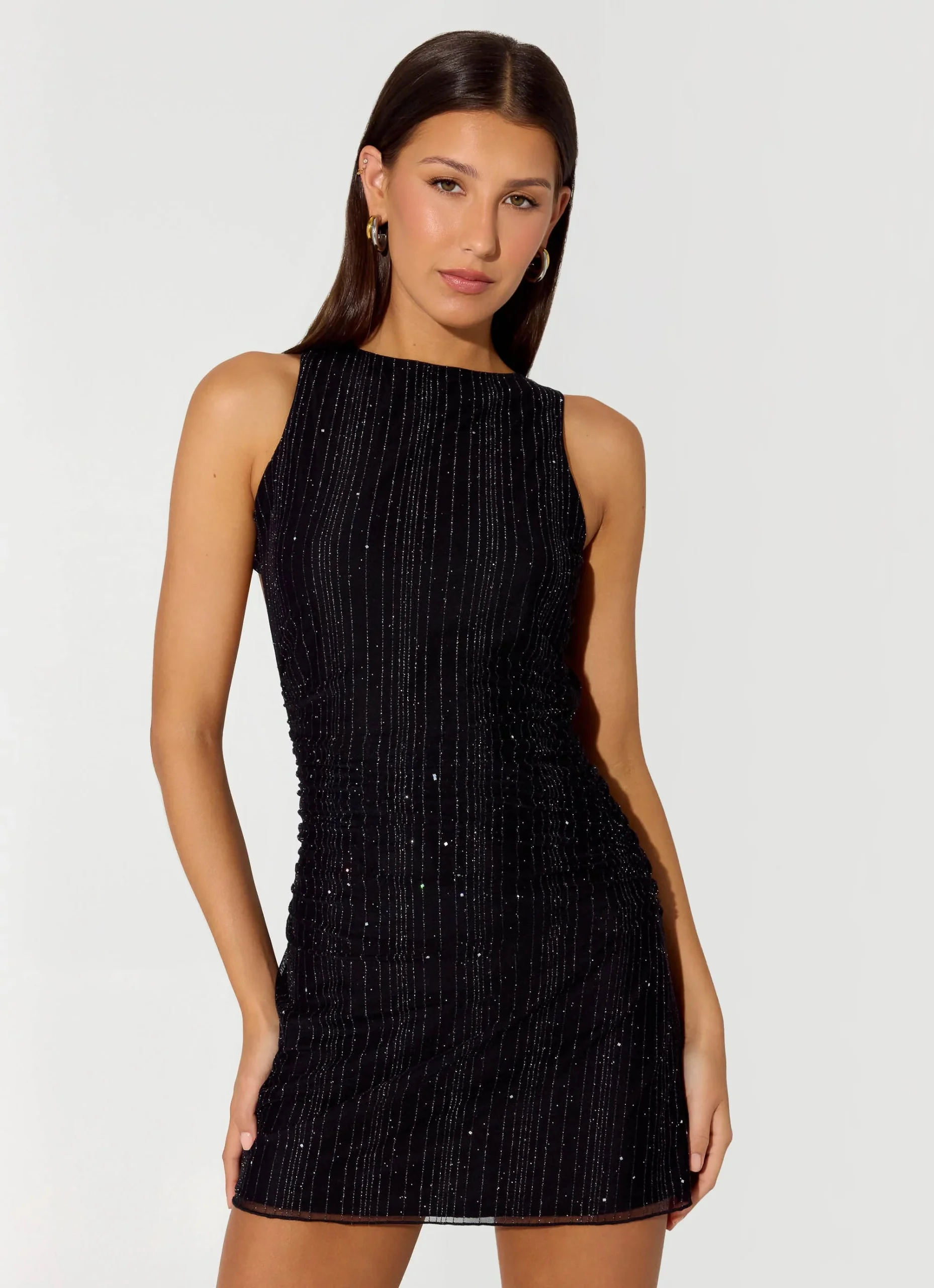 A Peppermayo exclusive, the Portofino Sparkle Mesh mini dress is perfect for golden hour evenings and dazzling nights out. Featuring a boat neckline, two adjustable straps at the back, and a tie back, this fully lined dress is crafted from stretchy, shimmery mesh for a flirty, figure-hugging fit. Perfect for a look from sunset to sunset.