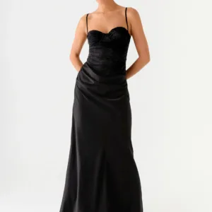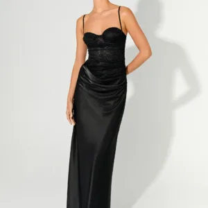 The Romy maxi dress is made for gold hours and evening parties. Adjustable straps and ruched underwire cups create a flattering silhouette, while draping along the thigh adds lightness and movement. Semi-fitted and fully lined, this maxi dress is perfect for creating an elegant look from the beach to the bar.