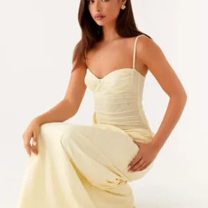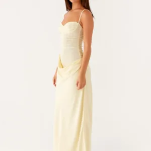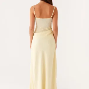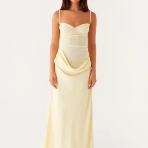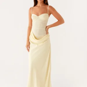 The Romy Maxi Dress is a stunning piece featuring structured, supportive underwire for a flattering fit and a gathered skirt for texture and movement.
