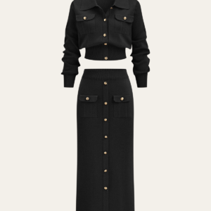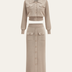 Be the first to review “Set of a cardigan with a collar on metal buttons and a midi skirt.”