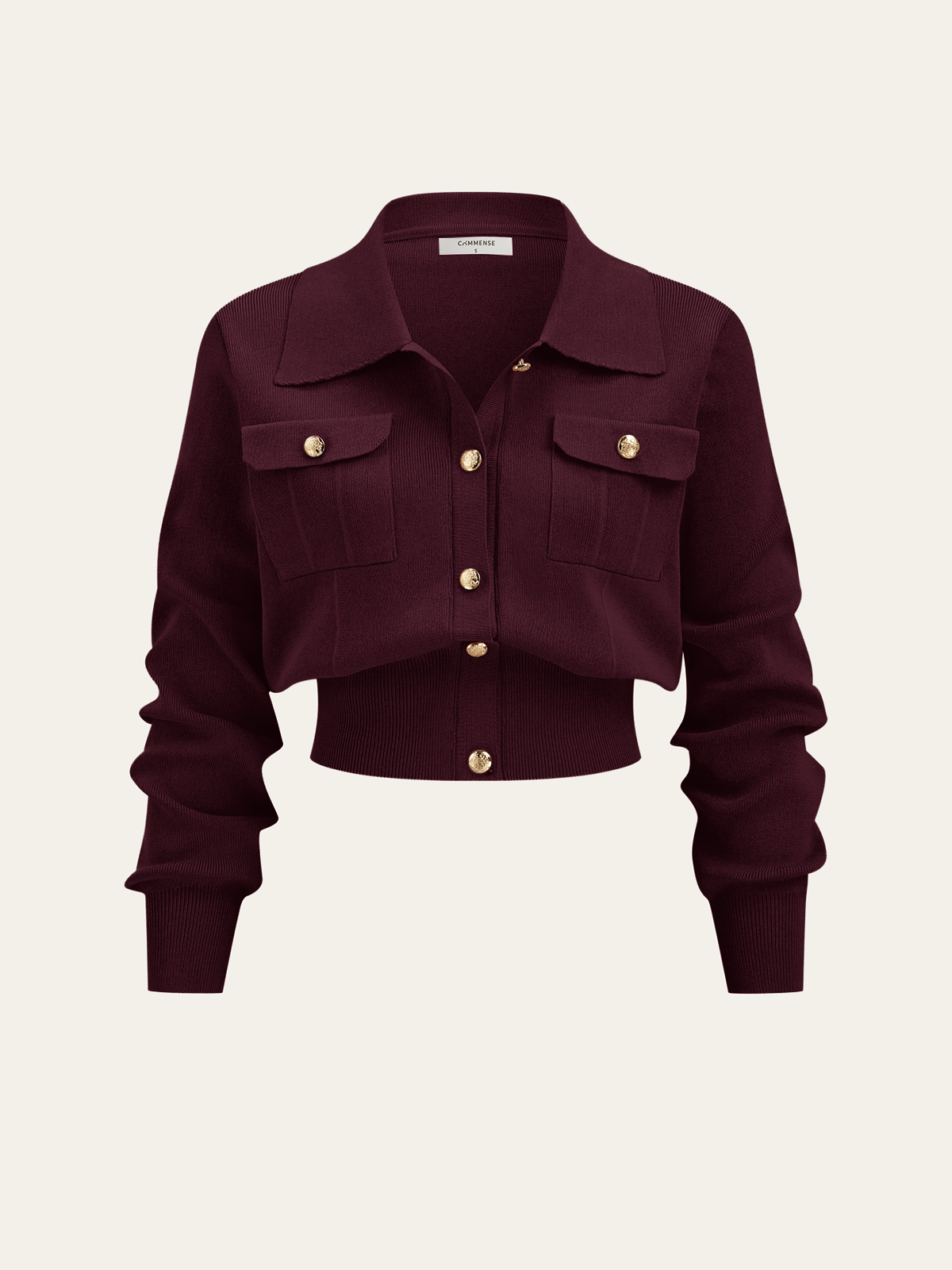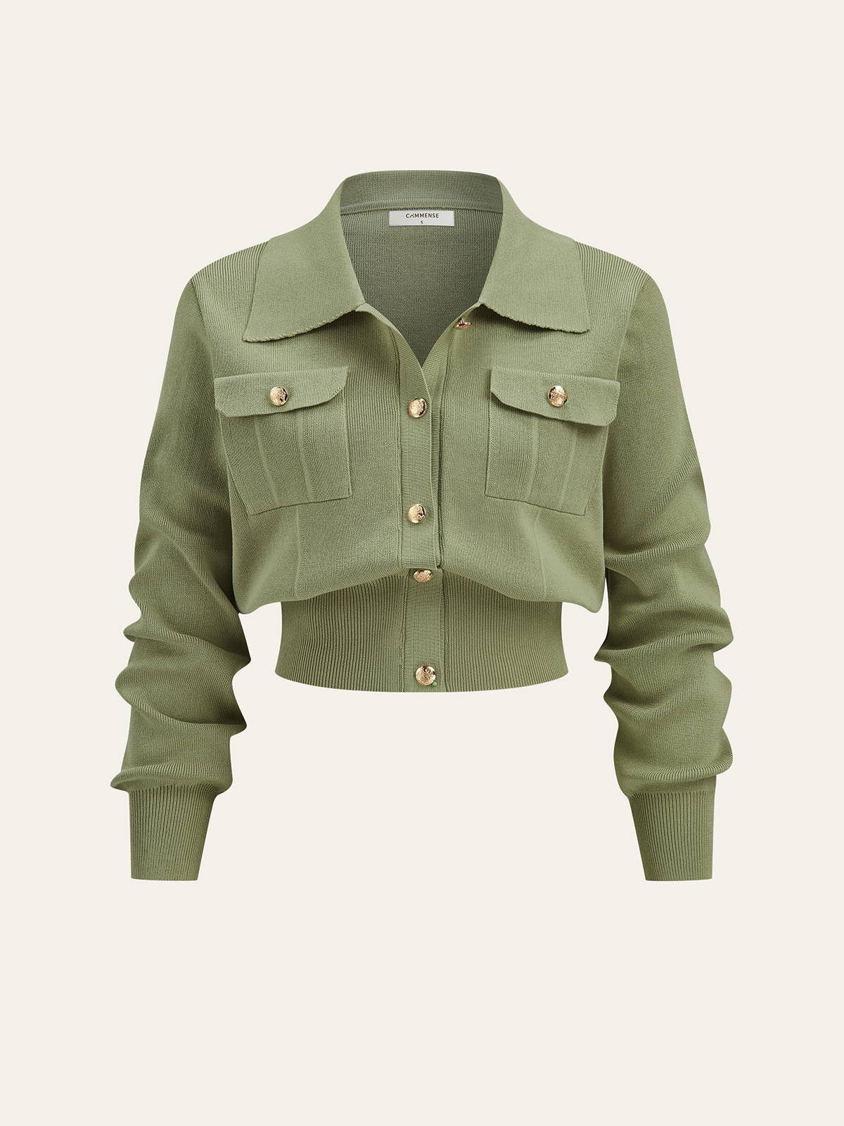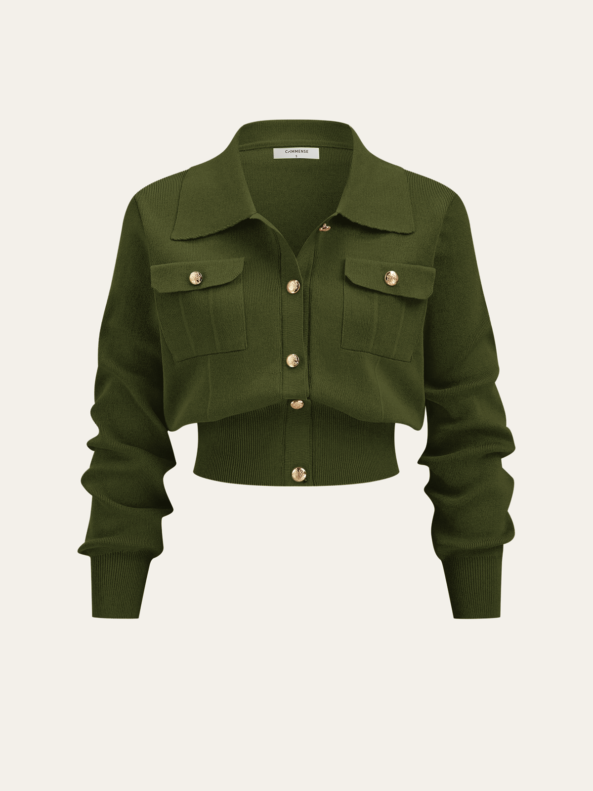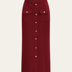 Set of a cardigan with a collar on metal buttons and a midi skirt.