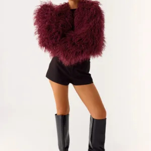 The Virginia Cropped Fur Jacket is a cozy, relaxed piece perfect for layering over any outfit. With a cropped silhouette and fully lined with faux fur, it adds warmth and luxurious texture.