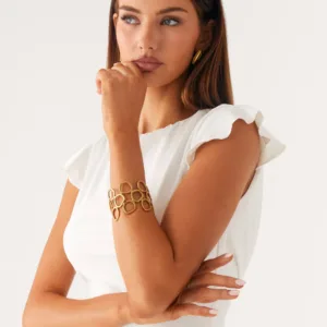 The Summer Fling Bracelet is an elegant, statement-making accessory designed for sunny days and evening radiance. Crafted from stainless steel, it will add a touch of sophistication and effortlessness to your golden hour look.