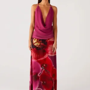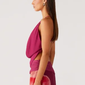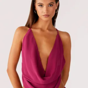 The Sweet Charm cowl-neck top is designed for casual evenings with a touch of elegance. This lined top features a low cowl neck at the front and thin, crisscross, adjustable straps at the back for a flirty look.