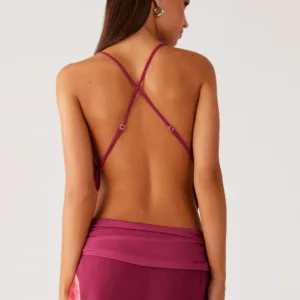 – Crisscross, adjustable thin straps at the back