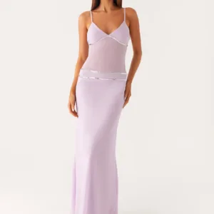 The Sweet On You maxi dress is made for golden hour evenings and beach nights. Featuring a sheer bodice with adjustable straps, an open back, and a flowing maxi silhouette, this fully lined dress combines effortless elegance with a figure-flattering fit.