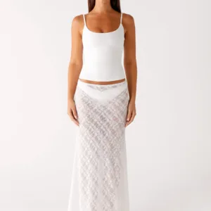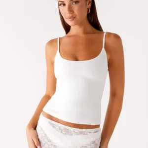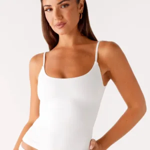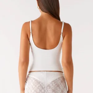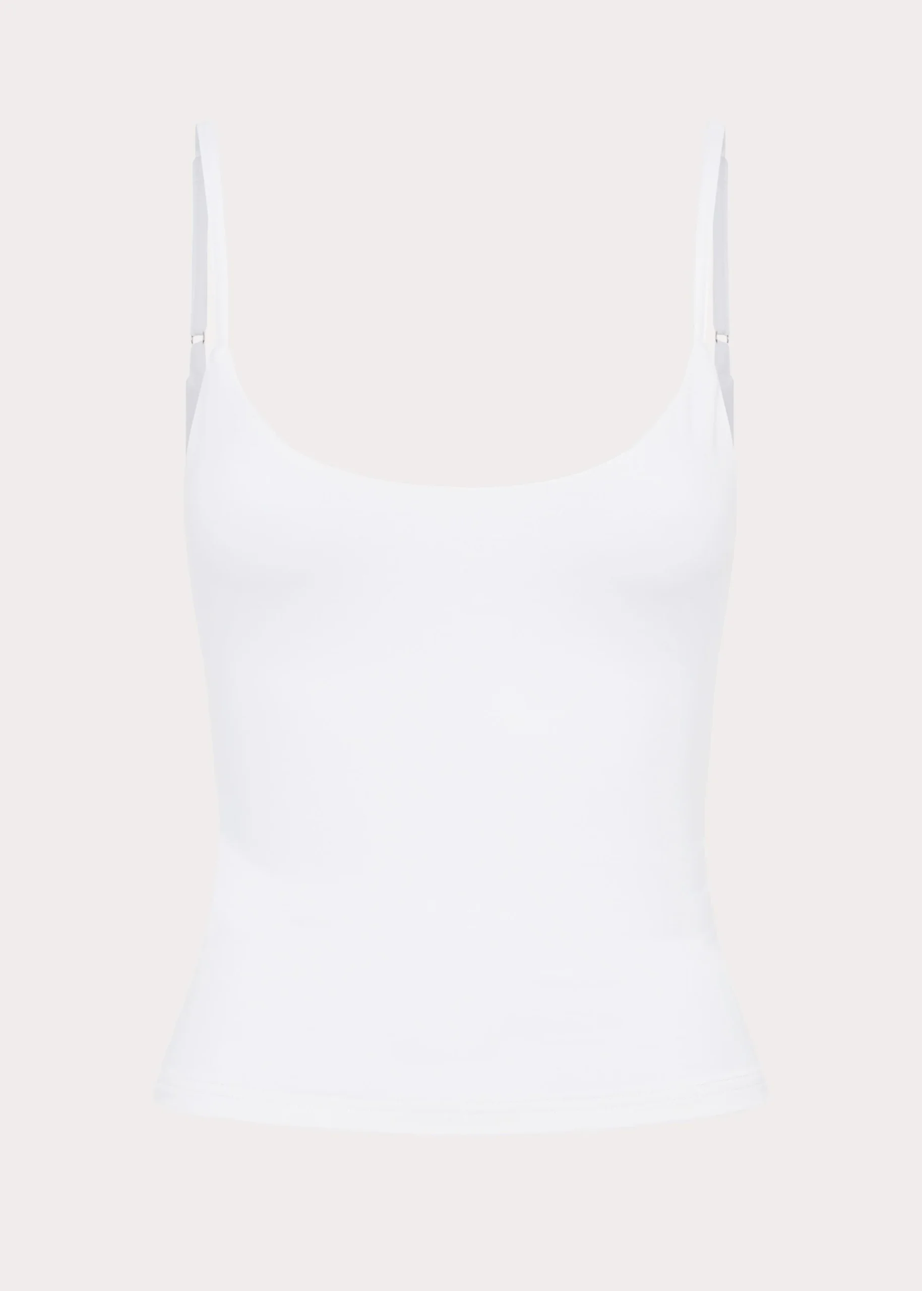 Casual, but with a touch of chic, the white Blondie tank top is designed to highlight the best features of the figure. Featuring a crew neck, stretch jersey fabric, and a low back, this dress is perfect for relaxed days that transition seamlessly into stylish evenings.