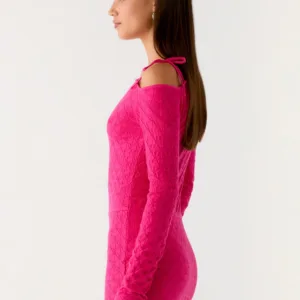 The Thalia Knit Mini Dress is designed for effortless all-day dressing, from golden hour to evening, thanks to its elegant, figure-hugging silhouette. Crafted from a soft, stretchy jersey fabric, this mini dress has a fitted silhouette and is perfect for a night out or a casual outing.
