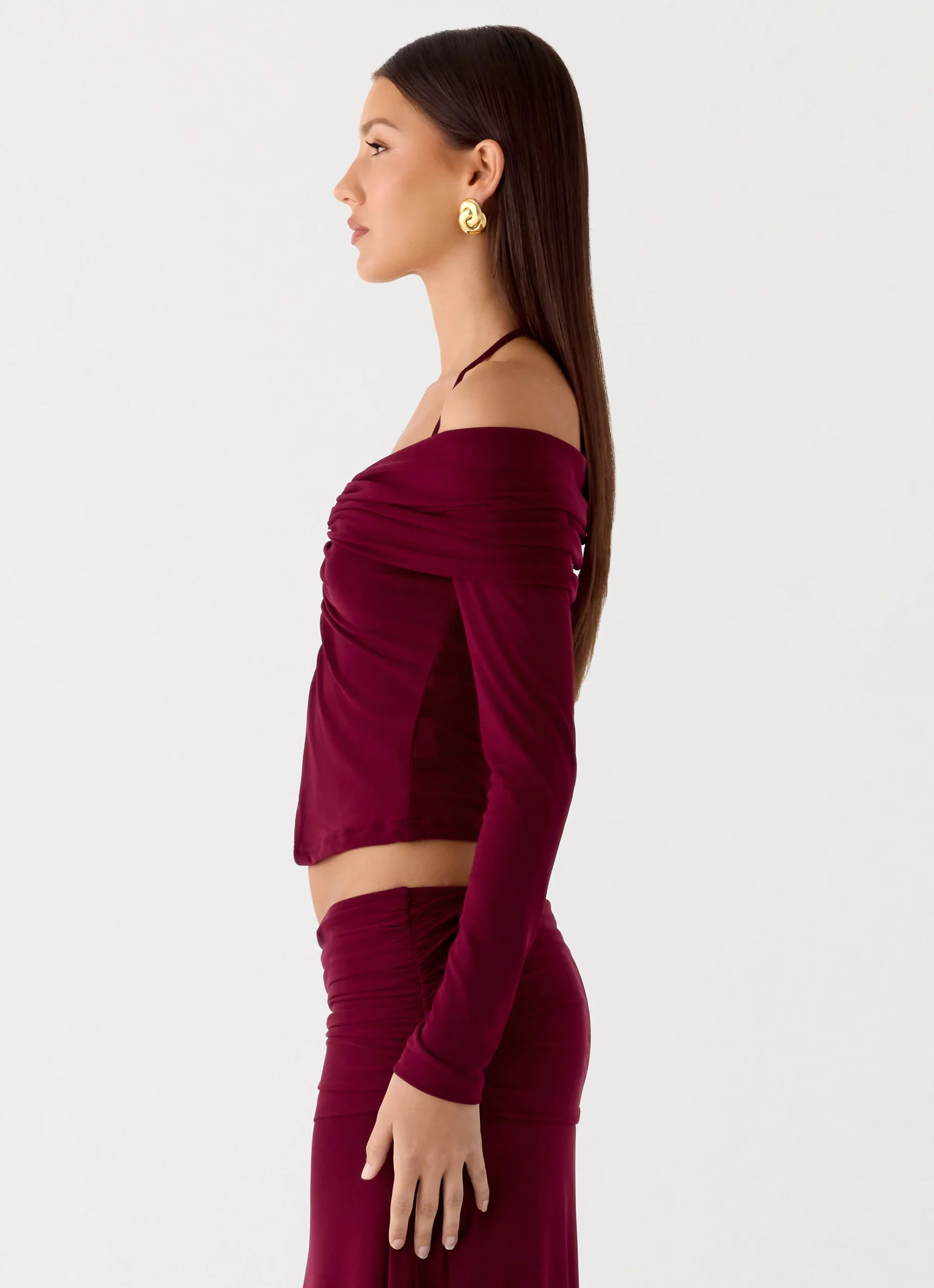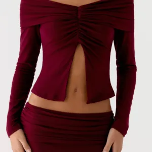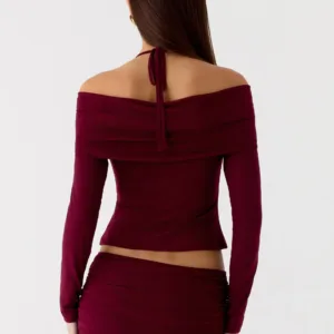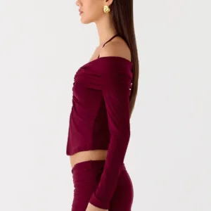 Designed for golden hour-drenched evenings, the Thorness Long Sleeve Top features an off-the-shoulder design with a front slit and twist detail, combining mesh fabric with a flattering silhouette that’s perfect for beach cocktails or sunset strolls around town.