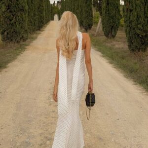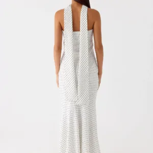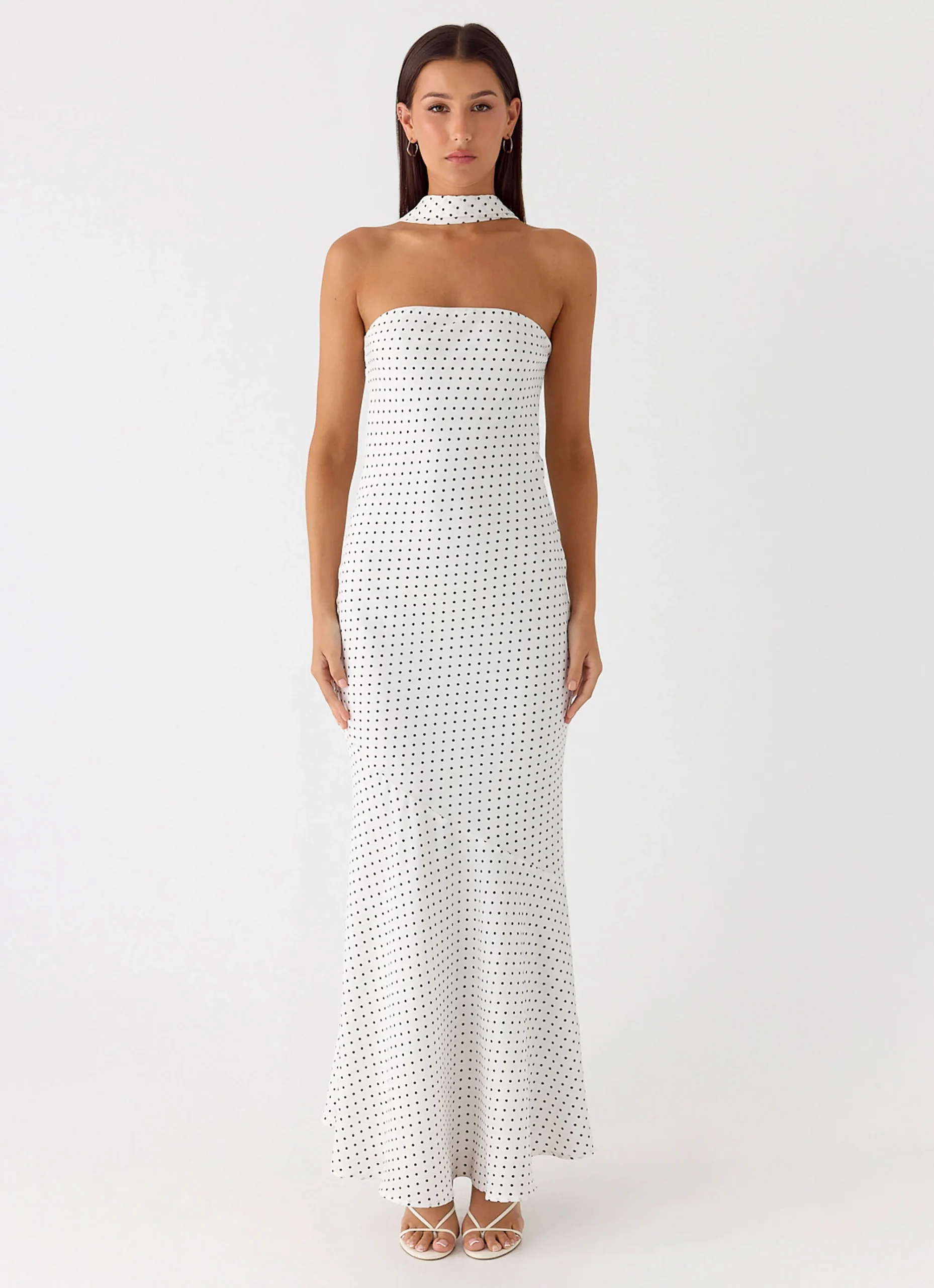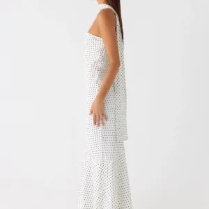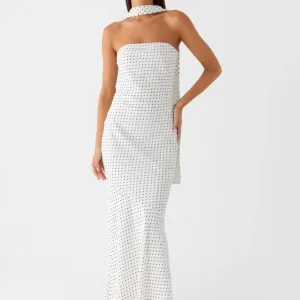 The Under The Pagoda dress length is bold and graceful. This strapless, fully lined dress with an asymmetrical skirt is made for golden skies and nights filled with effortless elegance.
