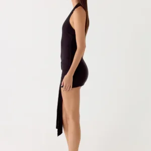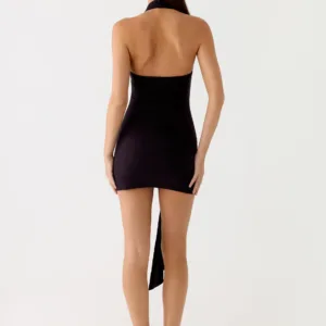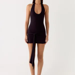 A Peppermayo exclusive, the Vedetta mini dress is made for evenings that don’t follow the rules. This fitted mini dress features a scooped halter neckline and a gathered waistband at the front, crafted from stretch ribbed knit. A bold cutout back and unlined finish make this dress the perfect choice for a bold evening look.